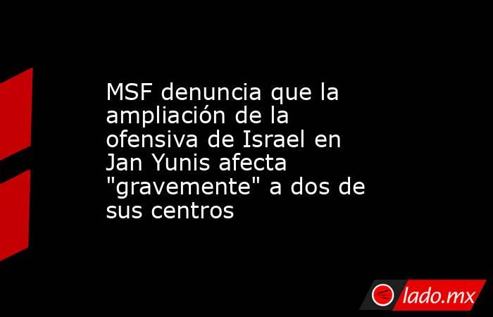La ONG Médicos Sin Fronteras (MSF) ha denunciado este jueves que las tropas israelíes han ampliado su ofensiva en el oeste de la ciudad palestina de Jan Yunis, al sur de la Franja de Gaza, lo que ha afectado "gravemente" sus labores en dos de los centros donde opera la organización.