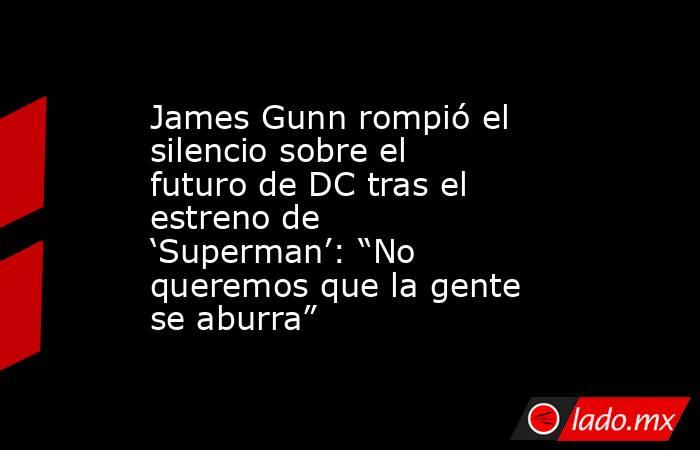 “No hay un estilo de la compañía. No es que cada película vaya a ser como Superman. Están los artistas, los directores y los guionistas que creen que cada uno brindará su propio sentido. No queremos que la gente se aburra“, agregó Gunn.