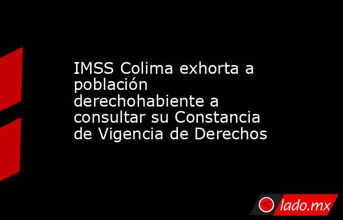 COLIMA.- El Instituto Mexicano del Seguro Social (IMSS) en Colima invita a la población derechohabiente a verificar y mantener actualizada su Constancia de Vigencia de Derechos, documento indispensable para acceder a los servicios médicos que otorga la Institución en todo el país.