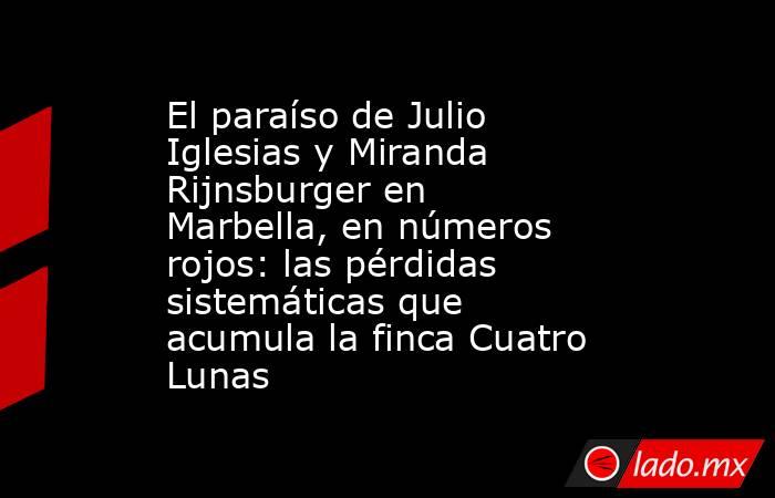 Ubicada en las colinas de Marbella, a 30 minutos del aeropuerto de Málaga y a 10 de Puerto Banús, la finca se extiende sobre unas 150 hectáreas repartidas entre Marbella y Ojén. En Cuatro Lunas, la familia dispone de caballos, bodega, piscina y múltiples comodidades. Según el ya citado medio, cuando se valoró la posible venta de la propiedad, la finca destacaba por la existencia de un “bosque animado, un inmenso alcornocal de árboles centenarios en el que el artista construyó un par de huertos ecológicos y cultiva frutas y verduras en los límites de la propiedad”.