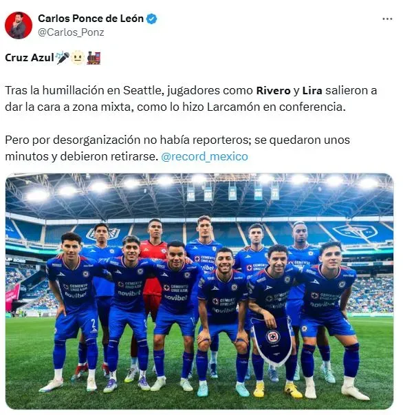 01 de Agosto, 2025 11:57 Revelaron la razón por la que ningún futbolista de Cruz Azul salió a hablar después de la derrota contra Seattle Sounders.
