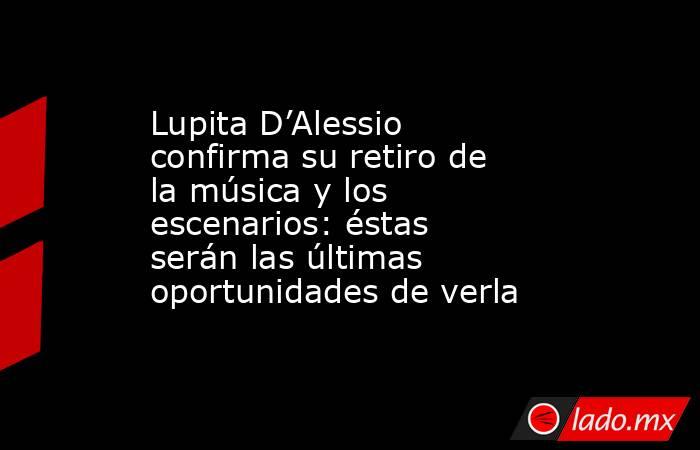 Después de más de cinco décadas de carrera, Lupita D’Alessio, una de las figuras más representativas de la música popular mexicana, confirmó su retiro definitivo de los escenarios y además reveló cuándo ofrecerá su último concierto.
