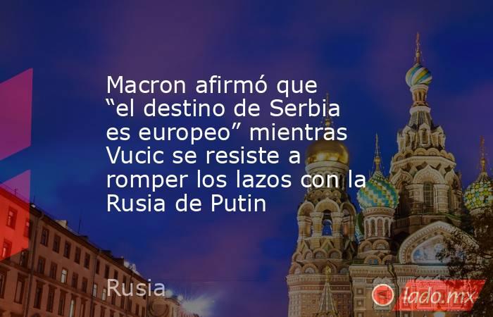 El presidente francés Emmanuel Macron reiteró este domingo su convicción de que el futuro de Serbia pertenece a la Unión Europea durante una conversación telefónica con su homólogo serbio Aleksandar Vucic, quien mantiene su resistencia a romper los lazos diplomáticos con el régimen de Vladimir Putin.