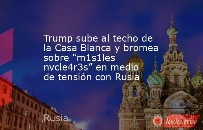En un momento poco habitual y cargado de simbolismo, el presidente de Estados Unidos, Donald Trump, sorprendió al subir el martes al techo de uno de los edificios de la Casa Blanca, donde lanzó una broma sobre colocar “misiles nucleares”, en un contexto de creciente tensión con Rusia.