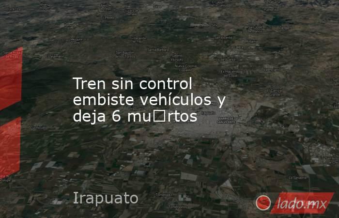 - Una tragedia sacudió a Irapuato este miércoles por la mañana, luego de que un tren sin control embistiera varios vehículos en su camino, dejando un saldo preliminar de seis personas fallecidas y dos más heridas, una de ellas de gravedad.