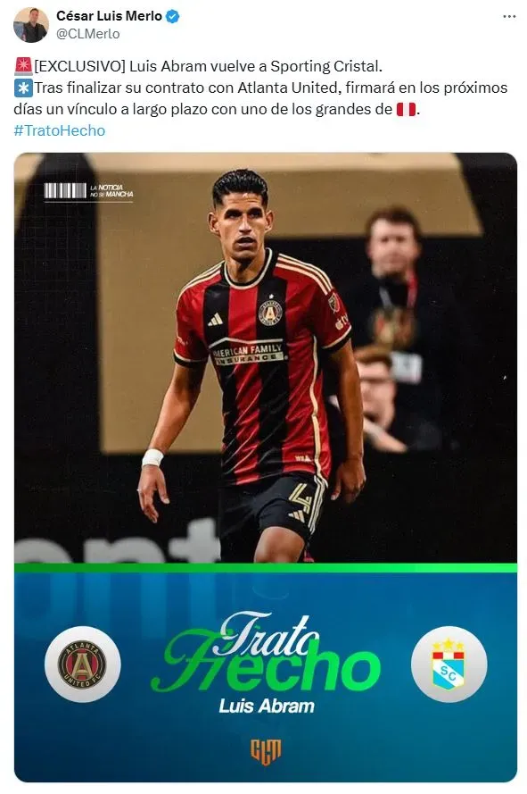 En medio de la incertidumbre con su futuro, César Luis Merlo confirmó que Luis Abram será nuevo jugador de Sporting Cristal.