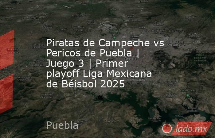 El primer playoff de la Liga Mexicana de Béisbol 2025 (LMB) continúa este martes 12 de agosto con el tercer juego de la serie entre Piratas de Campeche y Pericos de Puebla. Las acciones se trasladan a territorio poblano, con el Hermanos Serdán como sede.