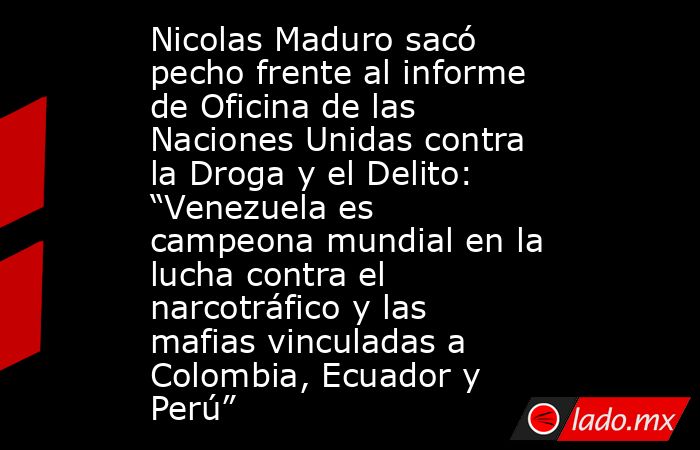 En el caso de Colombia, Maduro dijo: “Un 8% por las rutas criminales de La Guajira, que controla Iván Duque todavía, y van rumbo, a La Guajira colombiana y solo un 5% intentan pasarlo por territorio o mar venezolano. Bueno, solo un cinco por ciento, siendo Venezuela un territorio libre absolutamente de producción de hoja de coca, de laboratorios de cocaína, cien por ciento libre de eso”.