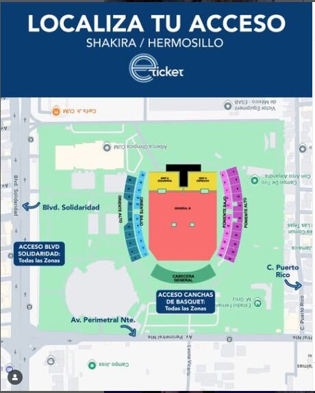 Para garantizar un acceso ordenado y seguro, la boletera Eticket dio a conocer el mapa oficial de entradas al recinto.