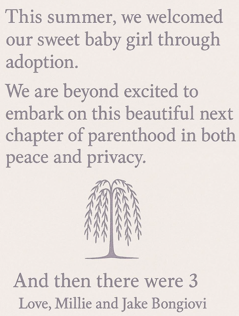 “Y entonces fuimos 3. Con amor, Millie y Jake Bongiovi”.