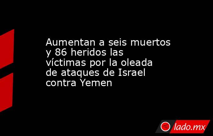 El número de víctimas por la ola de bombardeos ejecutada este domingo por el Ejército israelí contra Yemen, donde ha alcanzado dos centrales eléctricas y al menos un depósito de combustible, ha aumentado a seis muertos y 86 heridos, según ha indicado el Ministerio de Sanidad del Gobierno hutí.