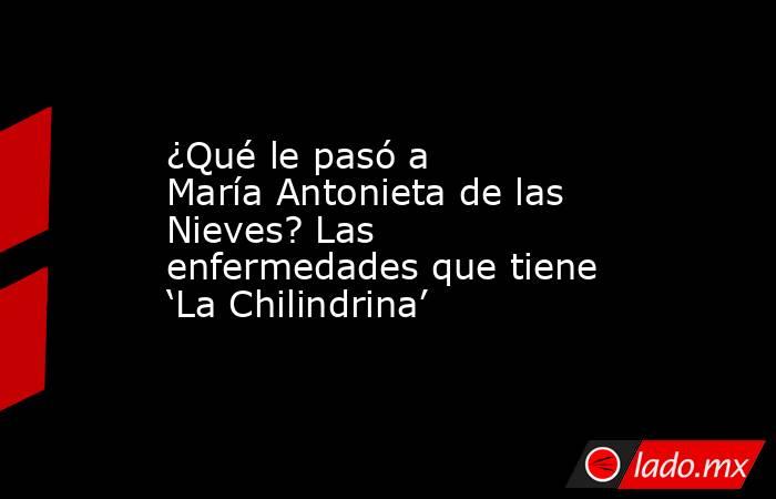 Aunque la fibromialgia es el único padecimiento crónico conocido de María Antonieta de las Nieves, la actriz ha sufrido otras enfermedades a lo largo de su vida.