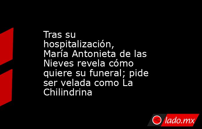 En una entrevista que concedió meses atrás al programa Hoy Día, María Antonieta compartió detalles de cómo quiere que sea su funeral. La actriz ya contrató un servicio funerario, eligió su ataúd decorado con figuras de la Virgen de Guadalupe, y hasta decidió qué ropa y maquillaje llevará para su despedida.