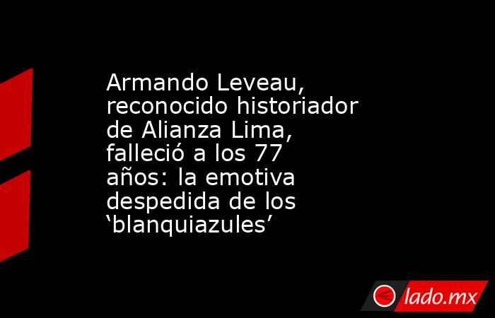 “Con profundo pesar despedimos a Don Armando Leveau, quien dedicó su vida a contar y preservar la historia de nuestro amado club. La familia de Alianza Lima expresa sus más sentidas condolencias a los familiares, amigos y a todo el pueblo aliancista. Que su legado eterno ilumine siempre al corazón blanquiazul”, publicó el cuadro victoriano por sus redes sociales.