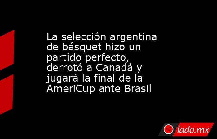 La selección argentina de básquet jugó un partido perfecto y venció 83-73 a Canadá en las semifinales de la AmeriCup que se disputa en Mangua, Nicaragua, y buscará repetir el título continental ante Brasil, que más temprano eliminó a Estados Unidos.