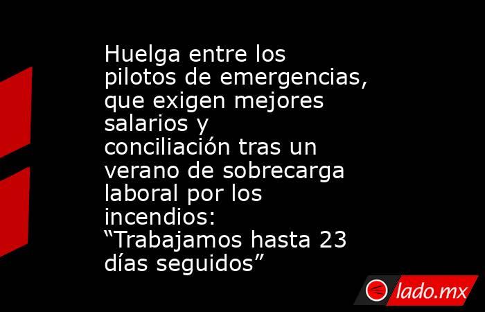 La organización sindical mayoritaria del sector, que incluye a trabajadores dedicados a la extinción de fuegos, pero también a pilotos sanitarios, de Salvamento Marítimo y otros profesionales dedicados a la asistencia aérea en casos de emergencia, denuncia la imposibilidad de conciliar este empleo con la vida privada por las jornada intensivas, la falta de desconexión en tiempos de descanso y la pérdida de poder adquisitivo. Con varios focos aún activos, miles de trabajadores en situaciones límite y convocatorias de huelga indefinida en dos de las principales empresas del sector, el Gobierno se ha lanzado a mediar con los agentes sociales una solución a este conflicto.