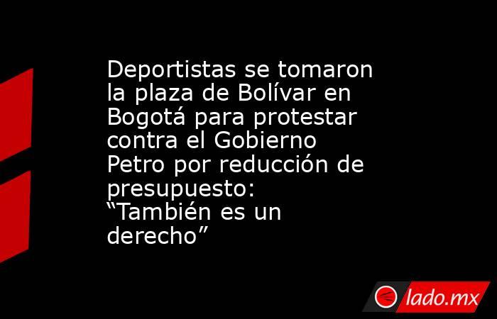 El impacto social y la amenaza a la formación de nuevas generaciones de atletas fueron el impulso principal detrás de una mariva movilización que se adelanta desde tempranas horas del lunes 1 de septiembre en la Plaza de Bolívar de Bogotá, donde atletas, entrenadores, dirigentes y simpatizantes del deporte expresan su descontento ante el recorte presupuestal anunciado para los próximos años.