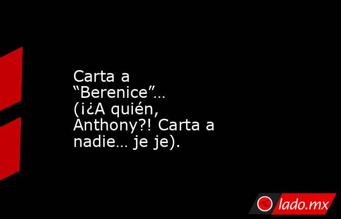 La entrada Carta a “Berenice”… (¡¿A quién, Anthony?! Carta a nadie… je je). aparece primero en Indice Político | Noticias México, Opinión, Internacional.