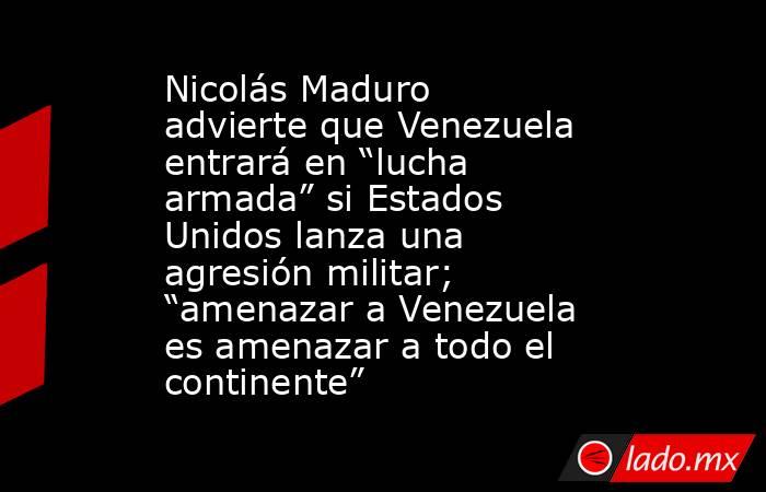 Durante una conferencia de prensa, el presidente de Venezuela, Nicolás Maduro, declaró que, en caso de una agresión militar directa contra su país, se daría inicio inmediato a un período de “lucha armada” para defender el territorio, la historia y la soberanía nacional.