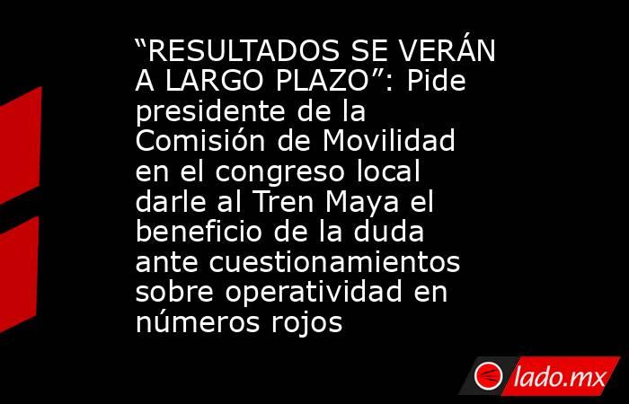 - Ante los reportes de que el Tren Maya no ha tenido la afluencia de usuarios que se esperaba y que la empresa mantiene números rojos en la operatividad, el presidente de la Comisión de Movilidad en la Décimo Octava Legislatura del Congreso, Alberto Batún Chulim, aseguró que el proyecto presidencial […]The post “RESULTADOS SE VERÁN A LARGO PLAZO”: Pide presidente de la Comisión de Movilidad en el congreso local darle al Tren Maya el beneficio de la duda ante cuestionamientos sobre operatividad en números rojos appeared first on Noticaribe.