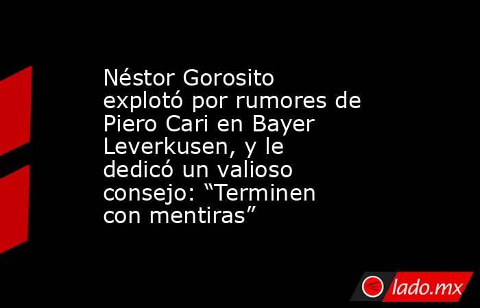 La aparición de Piero Cari en el fútbol profesional ha sido sorprendete para propios y extraños. Y es que se trataba de un jugador que nadie tenía rastreado y Néstor Gorosito le permitió competir en el plantel de Primera División de Alianza Lima con 17 años desde inicios de la temporada. Su buen rendimiento no ha pasado desapercibido e incluso su nombre estaría en la mira de Bayer Leverkusen. En ese sentido, Néstor Gorosito explotó por estos rumores y le dedicó un valioso consejo.