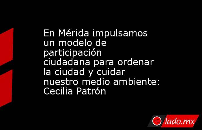 La entrada En Mérida impulsamos un modelo de participación ciudadana para ordenar la ciudad y cuidar nuestro medio ambiente: Cecilia Patrón se publicó primero en MPV: opinión, ciudadanos, PRI, PAN, PRD.
