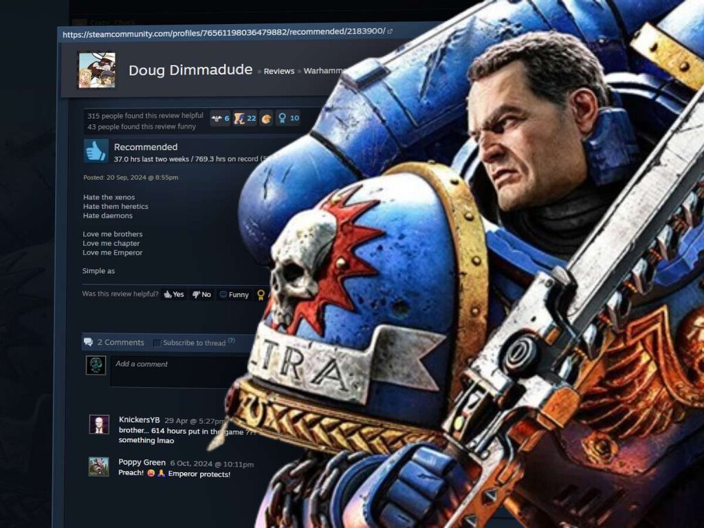 Yo adoro Space Marine 2, por ejemplo, pero en Steam hay muchos comentarios al estilo de "¡por el Emperador!" dejados casi al instante de publicar el juego que probablemente vengan de otros fanáticos de Warhammer 40.