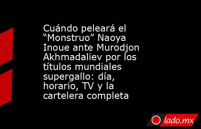 El Monstruo Naoya Inoue volverá a exponer sus coronas de campeón mundial y su impactante invicto este domingo 14 de septiembre en el Aichi International Arena de la ciudad de Nagoya, en Japón. El peleador de 32 años reaparecerá en su tierra para buscar una nueva defensa de los cinturones ante el uzbeko Murodjon Akhmadaliev.