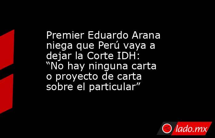 El jefe de Gabinete, Eduardo Arana, negó este miércoles una salida inmediata de Perú de la competencia de la Corte Interamericana de Derechos Humanos (Corte IDH), al responder a una pregunta de una periodista sobre si ya estaba lista la carta de renuncia.