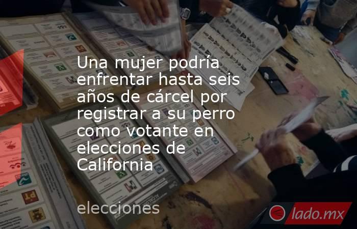 La oficina del fiscal de distrito del condado de Orange, California, informó que una ciudadana de Costa Mesa, Laura Lee Yourex, enfrenta cargos luego de que se descubrió que registró a su perro para votar y emitió votos en dos comicios bajo la identidad del animal. De acuerdo con información difundida por el Los Angeles Times, Yourex, de 62 años, podría cumplir hasta seis años de prisión en caso de ser hallada culpable.
