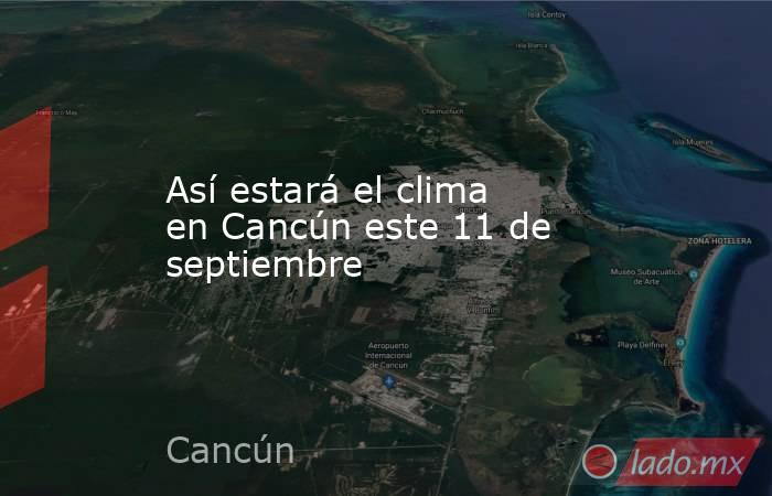 - Este jueves 11 de septiembre, el clima en Cancún se presenta con lluvia ligera y una temperatura máxima de 32 grados, según el pronóstico meteorológico.