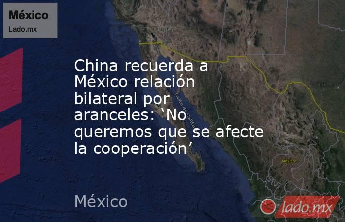 “China y México son socios económicos y comerciales importantes el uno del otro y China no quiere ver afectada dicha cooperación”, agregó.