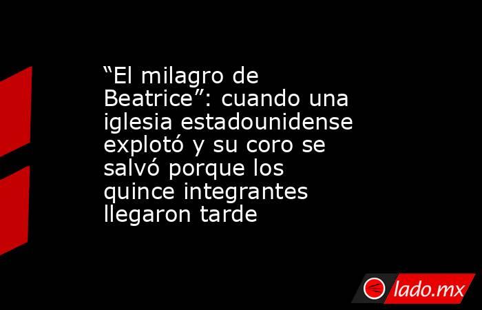 La reconstrucción no solo restauró un lugar de culto, sino que reforzó la fe de los habitantes de Beatrice. Para muchos, el evento se convirtió en un símbolo de esperanza y de la creencia en que “todo sucede por una razón”. Este suceso recorrió de costa a costa los Estados unidos y la prensa tomó cartas para relatar el “milagro”. La revista Life, en su edición del 27 de marzo de 1950, publicó un artículo titulado “Why the Choir Was Late” (“Por qué el coro llegó tarde”), escrito por George Edeal. El texto narraba las circunstancias que salvaron a los 15 miembros del coro, destacando la improbabilidad del hecho. El artículo capturó la fascinación del público, presentando el caso como una “megacoincidencia” que desafiaba la lógica.