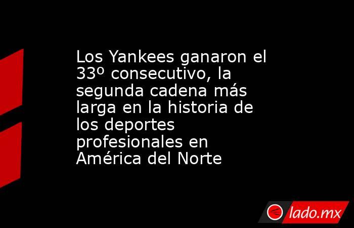 Treinta y tres temporadas victoria consecutiva no son solo la segunda cadena larga en la historia del béisbol. Es la segunda serie más larga de ganadores en la historia de cuatro principales torneos deportivos profesionales en América del Norte. Aquí están las temporadas ganadoras más largas: