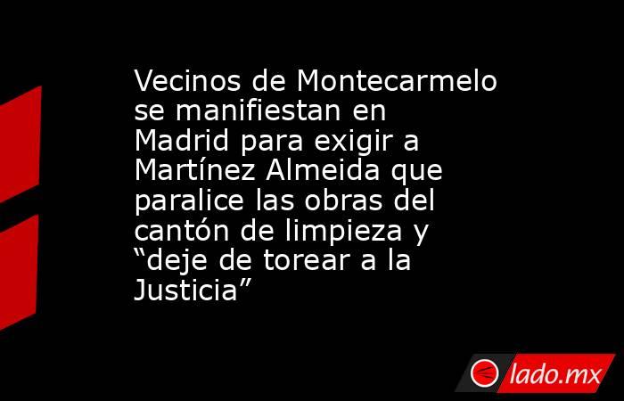Los vecinos de Montecarmelo en Madrid vuelven a salir a la calle este domingo para exigir al Ayuntamiento de José Luis Martínez Almeida que cumpla la sentencia judicial que declaró ilegal el proyecto del cantón de limpieza y paralice las obras. Organizados en Plataforma No al Cantón de Montecarmelo y la Asociación Vecinal de Montecarmelo, han convocado a las 11:30 horas una manifestación -ya es la quinta- para reclamar que esta macroinstalación, que ocupará 12.000 metros cuadrados, sea reubicada en una zona industrial, lejos de colegios, viviendas y parques naturales y acusan al delegado de Urbanismo y Medio Ambiente, Borja Carabante, de haber aprobado, por decreto, un nuevo proyecto “calcado al anterior” anulado por el juez.