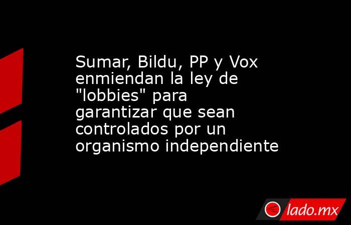 Sumar, Bildu, el PP y Vox pretenden modificar el proyecto de ley de Transparencia e integridad de las actividades de los grupos de influencia para que el futuro registro en el que deberán inscribirse los "lobbies" esté controlado por un organismo independiente y no por la Oficina de Conflictos de Interés, adscrita al Ministerio de Transformación Digital y Función Pública.