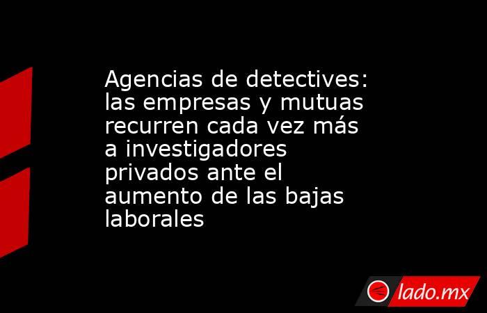 El aumento de las bajas laborales por incapacidad temporal hace que algunas mutuas duden de la veracidad de estas patologías. Por ello, recurren a la contratación de agencias de detectives, que se encargan de vigilar a los trabajadores durante su periodo de baja, para corroborar si realmente sufren la dolencia por la cual se encuentran en un cese temporal de su empleo. En lo que va de año, las mutuas con convenios con el Estado han desembolsado millones de euros en la contratación de detectives privados. Desde Umivale Activa, destacan que el dinero destinado a este tipo de contratos no ha presentado ninguna variación este año, sino que es el programado en la partida presupuestaria.