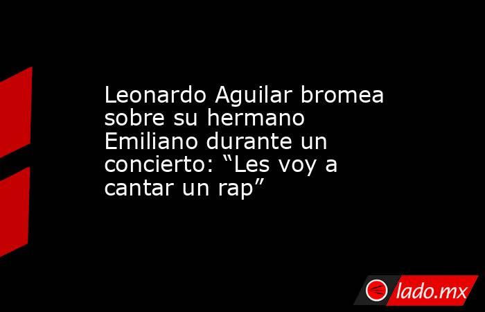 Durante una presentación, Leonardo, tomó el micrófono y se dirigió al público con las siguientes palabras: “Les voy a cantar un rap, ¿están listos?”, expresó ante el público. El comentario, acompañado de una broma sobre no ser el “Aguilar” que canta rap, fue interpretado como una alusión directa a Emiliano Aguilar, quien adoptó el rap como género principal.