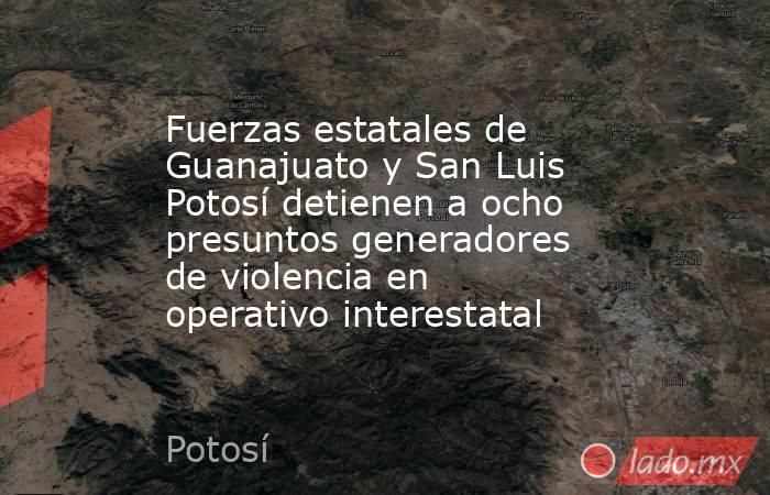 En un operativo conjunto, elementos de las Fuerzas de Seguridad Pública del Estado de Guanajuato (FSPE) y de la Guardia Civil Estatal de San Luis Potosí detuvieron a ocho presuntos generadores de violencia en la zona limítrofe entre ambas entidades.