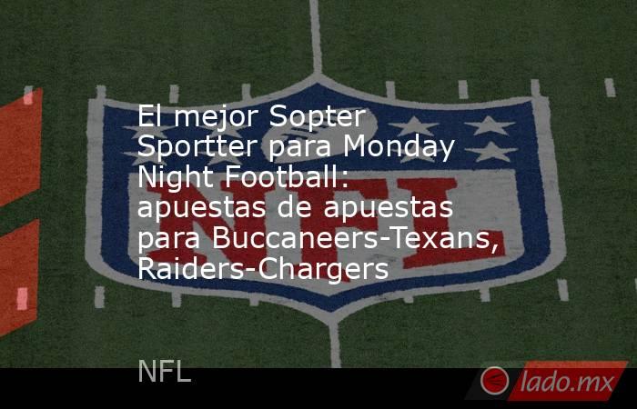 En el Juego 1, Houston es un favorito de 2.5 puntos en las últimas probabilidades de Texans vs Buccaneers, mientras que Over/Under es de 42.5 puntos. Al final del juego, Los Ángeles es un favorito de 3.5 puntos en los últimos Chargers en comparación con las probabilidades de Raiders, con una tasa superior/inferior a 46.5 puntos. Este es un vistazo a algunas cabezas Probabilidades de la NFL Mejora y competencias de diferentes deportes para el segundo horario de fútbol de Lunes Night.