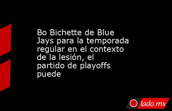 Toronto Blue Jays Shorthop Bo Bichette, quien no ha jugado desde entonces 6 de septiembre Debido a que un PCL tiene un esguince en la rodilla izquierda, se perderá el resto de la temporada habitual. Sin embargo, Bichette puede tener un retorno en la producción posterior.