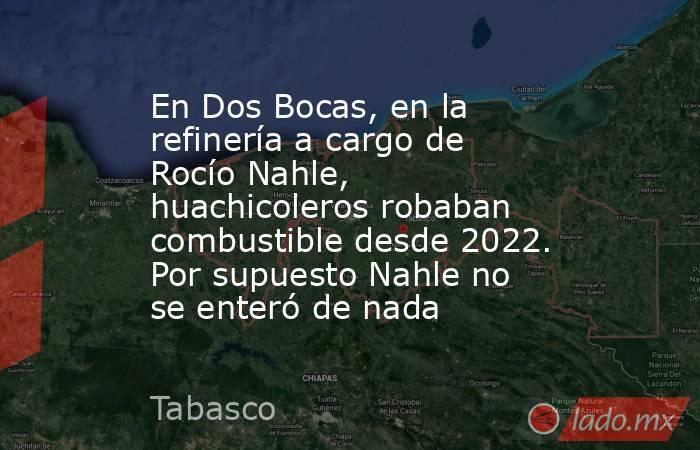 Reporta el periódico El Universal que huachicoleros liderados por Elder Rodríguez Torres robaban combustible a los barcos que desembarcaron en Dos Bocas, combustible que era para la refinería Olmeca a cargo de la entonces secretaria de Energía, Rocío Nahle. Señala El Universal: «Una red de huachicoleros en Tabasco —liderados por Elder Rodríguez Torres, alias La Hormiga— llegó a pagar hasta 10 mil pesos a marinos para que le permitieran robar combustible en la refinería Olmeca de Petróleos Mexicanos (Pemex) en Dos Bocas en 2022.