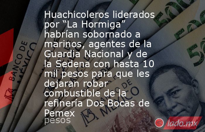 MÉXICO.— De acuerdo con información publicada por El Universal, una red de huachicoleros en Tabasco, liderada por Elder Rodríguez Torres, alias La Hormiga, sobornaba a marinos con hasta 10 mil pesos para permitir la extracción ilegal de combustible en la refinería Olmeca de Pemex, en Dos Bocas.