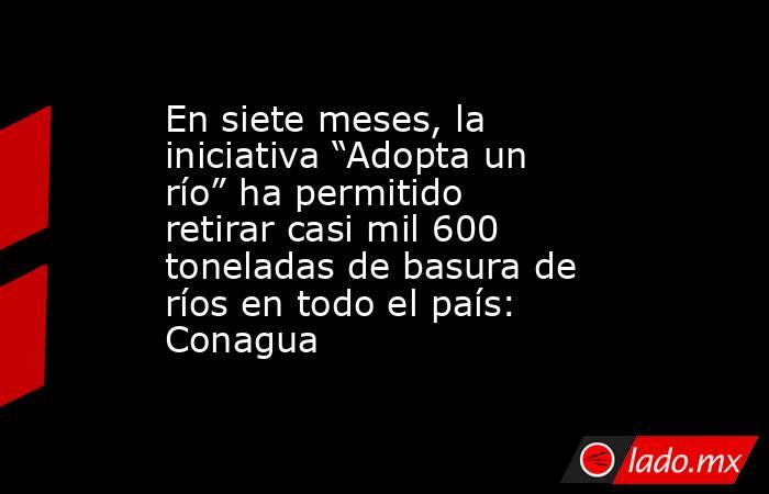 Como parte de los compromisos ambientales del Gobierno de México, la Comisión Nacional del Agua (Conagua) avanza en la limpieza y recuperación de los cuerpos de agua, por ello, a siete meses de haber iniciado la iniciativa Adopta un río, se han logrado retirar casi mil 600 toneladas de basura que contaminaban los afluentes.