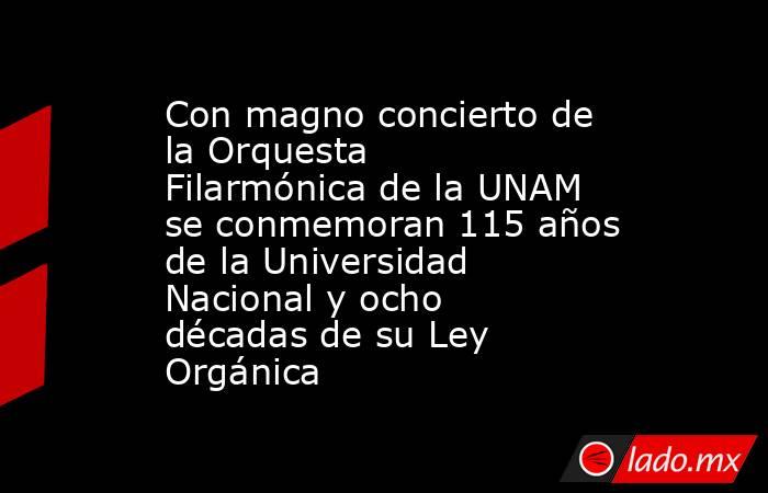 • En Las Islas en CU se dieron cita integrantes de la comunidad universitaria, visitantes, así como Leticia Cano Soriano, Fernando Macedo Chagolla, Joaquín Narro Lobo y Juan Carlos Lomónaco La “obra inmensa de cultura” de la que habló Justo Sierra en su discurso de reconstitución de la Universidad Nacional en 1910, se refrendó de […]The post Con magno concierto de la Orquesta Filarmónica de la UNAM se conmemoran 115 años de la Universidad Nacional y ocho décadas de su Ley Orgánica appeared first on Página 3.