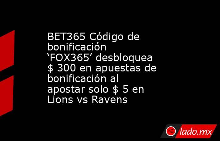 BET365 Código de bonificación ‘FOX365’ desbloquea $ 300 en apuestas de bonificación al apostar solo $ 5 en Lions vs Ravens Mas Cipolleti