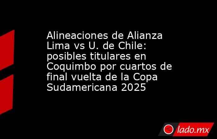 Alianza Lima se jugará la vida frente Universidad de Chile en la definición de los cuartos de final en la Copa Sudamericana 2025. Este jueves 25 de septiembre, los ‘blanquiazules’ visitarán a la escuadra chilena a las 19:30 horas en el estadio Francisco Sánchez Rumoroso de Coquimbo.