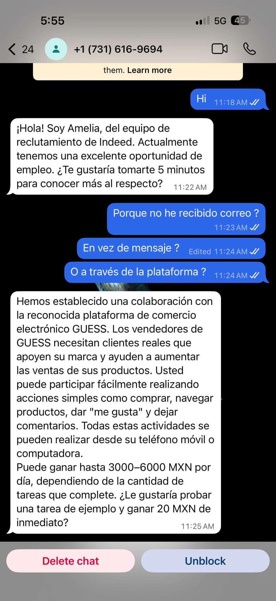 La dinámica de la estafa inicia con una llamada telefónica. Posteriormente, los supuestos reclutadores solicitan continuar el contacto mediante WhatsApp o correo electrónico.