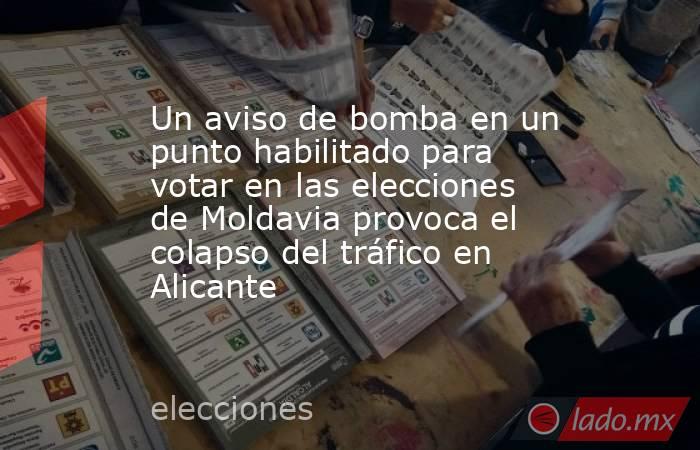 La Policía Nacional ha cortado durante aproximadamente 90 minutos uno de los principales accesos a la ciudad de Alicante, la avenida de Elche, tras recibirse este domingo un aviso anónimo de amenaza de bomba en un colegio electoral habilitado para las elecciones parlamentarias de Moldavia. Finalmente, los artificieros descartaron la presencia de explosivos y se confirmó que se trataba de un falso aviso.