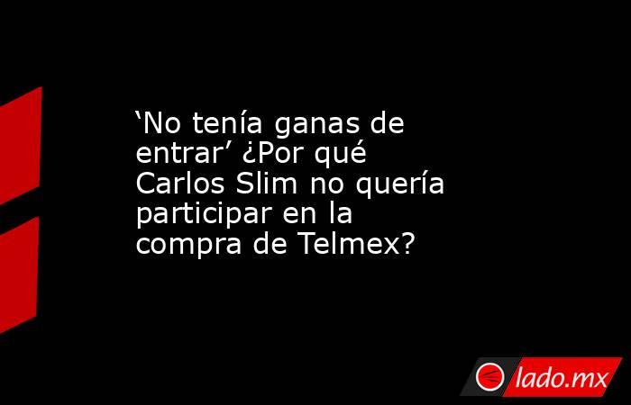 El propietario de Grupo Carso señaló que al inicio “no tenía ganas” de participar en el proceso de privatización de Telmex impulsado por el gobierno de Carlos Salinas de Gortari, debido a la crisis operativa que atravesaba la compañía.
